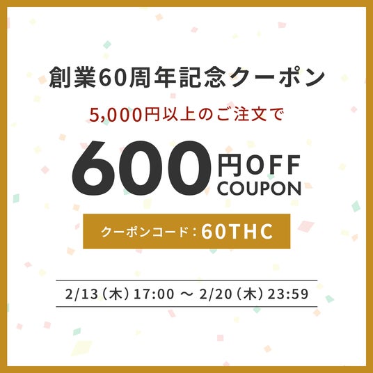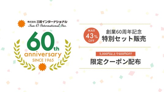 本キャンペーンでは、創業60周年を記念した特別セット(2種類)の販売に加え、公式オンラインショップ内のお買い物に使用できるクーポンを配布いたします。