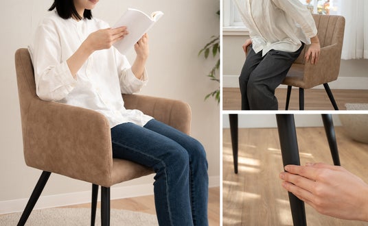 程よい高さとクッション性のある肘掛けが、読書の際に活躍。手や肩への負担を軽減し、リラックス姿勢で本を読むことができます。脚はサビに強い粉体塗装が施された丈夫なスチール製です。