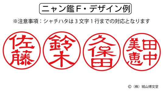 株式会社 城山博文堂では、文字の一部に猫顔のデザインが潜む印鑑「ニャン鑑F」をクラウドファンディング[Makuake]で先行発売しております。