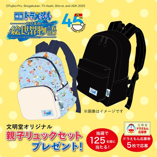 みんなで食べよう♪文明堂オリジナル親子リュックセットが125名様に当たる!「映画ドラえもん のび太の絵世界物語(えせかいものがたり)」限定デザインのどら焼きが2025年2月19日新登場!