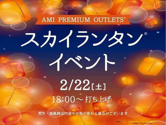 あみアウトレットの夜空を灯す幻想的イベント スカイランタン(R)開催 2月22日(土)