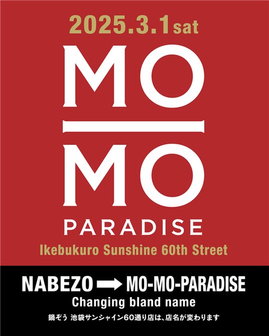株式会社ワンダーテーブル[本社:東京都新宿区西新宿 / 代表取締役社長 河野 博明]は、しゃぶしゃぶ・すき焼きレストラン「鍋ぞう 池袋サンシャイン60通り店」の店名を、2025年3月1日(土)より「モーモーパラダイス 池袋サンシャイン60通り店」に変更することをお知らせいたします。