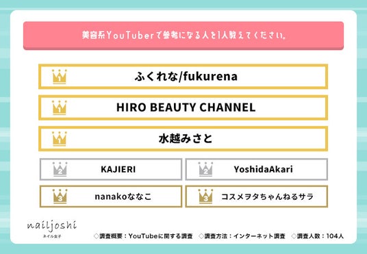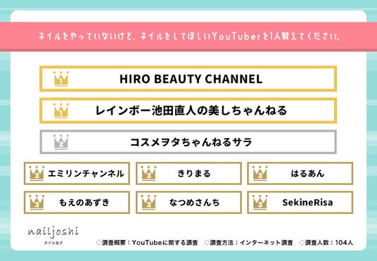 ネイルをやってほしいYouTuber No.1は「HIRO BEAUTY CHANNEL」「レインボー池田直人の美しちゃんねる」