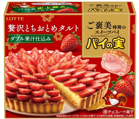 株式会社ロッテは2025年2月18日(火)、 パイの実45周年とトッポ30周年の周年連動企画第3弾として、ブランド初挑戦となる新製法の製品を発売いたします。パイの実では、新製法「ダブル果汁仕込み」で、パイの実史上最大のいちご量を実現した「パイの実<贅沢とちおとめタルト>」、トッポでは、焼成したプレッツェルにカラメルをまぶす新製法で、ブランド史上初のカラメルプレッツェルを実現した「トッポ<ヘーゼルナッツのキャラメリゼ>」です。