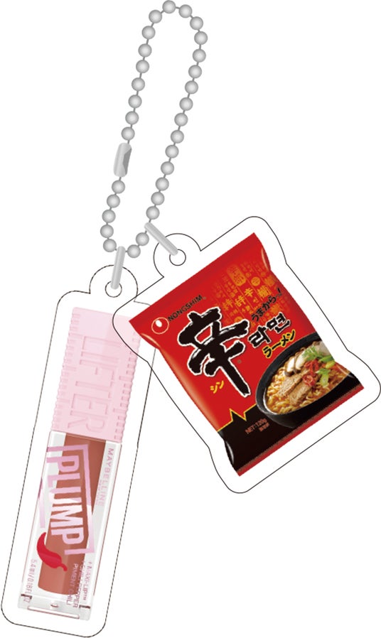 店頭にて「メイベリン リフタープランプ L」をご購入の方に、先着で辛ラーメンとのコラボアクリルチャームをプレゼント!昨今反響をいただいているガシャポン(R)でもおなじみの”ミニ辛ラーメン”がとってもキュート(ハート)