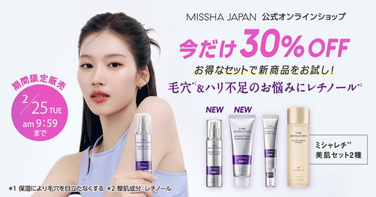 ■今だけ30%OFF!ミシャジャパン公式オンラインショップ本店限定で、新商品を含むお得な「ミシャレチ*²美肌セット2種」を販売!
