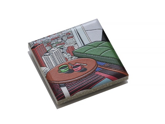 Coffee & Kabukicho 珈琲と歌舞伎町HOTEL GROOVE SHINJUKUの客室は天井から足元までの大きな窓が取られ、東京を一望する景色が目の前に広がります。客室からの絶景を思い出のシーンとして切り取った作品。