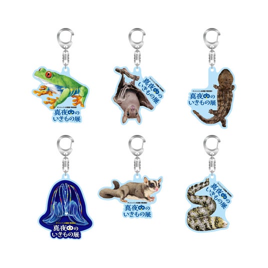 サンシャイン水族館オリジナル 真夜中のいきもの展アクリルキーホルダー(カプセルトイ仕様)特別展で展示する生き物たちの全6種のアクリルキーホルダー。それぞれの生き物を担当する飼育スタッフが色味やイラストの細部までこだわりました。