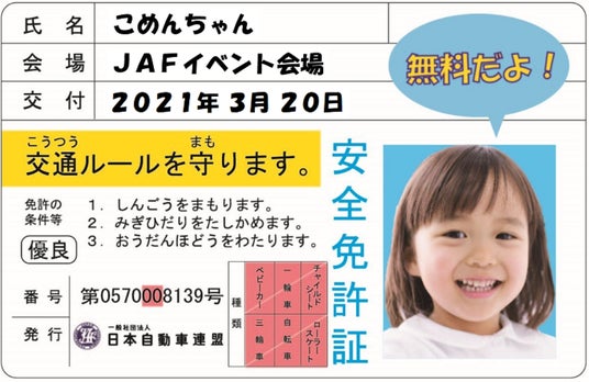 ■子ども安全免許証:交通安全クイズに答えて、本物そっくりの免許証をその場で発行します。
