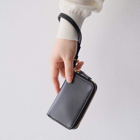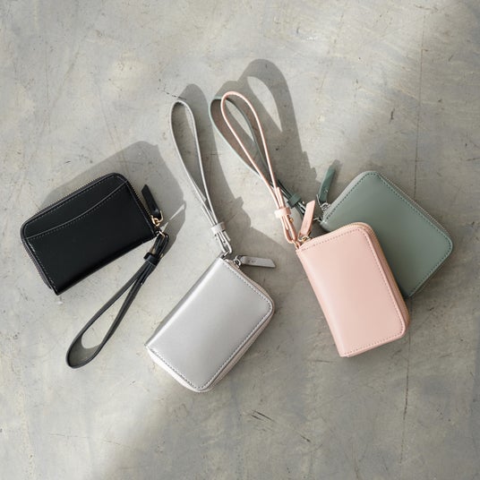 ストラップが付いた、持ち運びのしやすいミニウォレット。