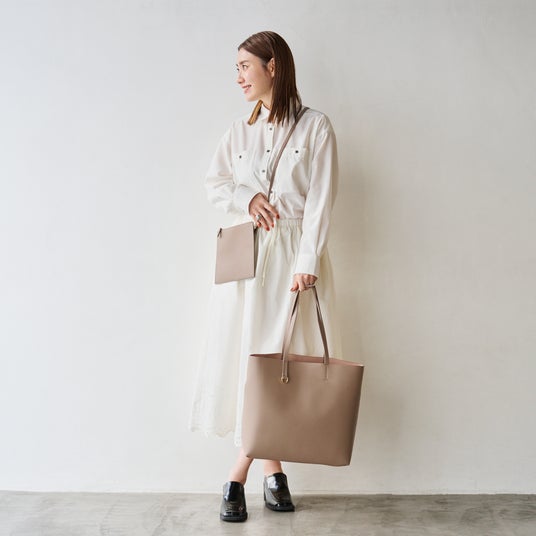今回のラインアップには、荷物が“ととのう”工夫を随所に盛り込みました。PCバッグ付きの大容量のトートバッグや、ハンドルを変えることで印象を自由に変えられるショルダーバッグ、さらに、ハートモチーフが可愛い2連ショルダーや、サウナ好きならではの東原氏のアイデアを反映したサウナポーチなどが揃います。
