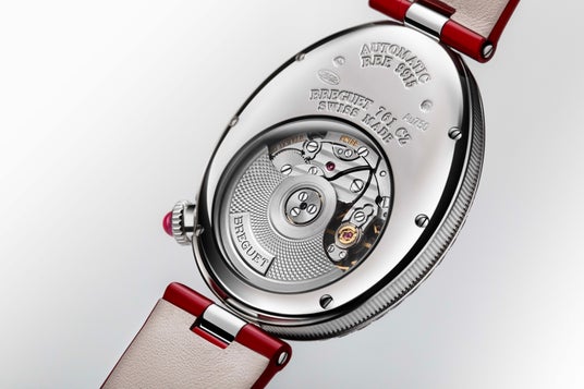 ブレゲの自動巻キャリバー537/3は、エレガンスと洗練された技術を体現しています。コンパクトな直径で制作された時計製造の傑作は、円形のバーリーコーンパターンの手彫りギヨシェを繊細に施したプラチナ製ローターが際立ちます。45時間のパワーリザーブを備え、シリコン製のひげゼンマイとアンクルを採用することによって精度と耐磁性を高めています。ブレゲの卓越したクラフツマンシップが細部に至るまで反映されたキャリバーは、革新性とデザインを融合させることで「クイーン・オブ・ネイプルズ」コレクションのタイムピースを洗練させています。