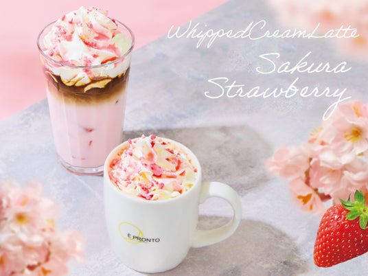 「PRONTO(プロント)※1」などを展開する株式会社プロントコーポレーション(本社:東京都港区、代表取締役社長:杉山和弘)は、終日セルフサービスのカフェ「È PRONTO(エプロント)」にて、「さくらストロベリーラテ」など4品の期間限定商品を、2025年2月18日(火)より発売いたします。