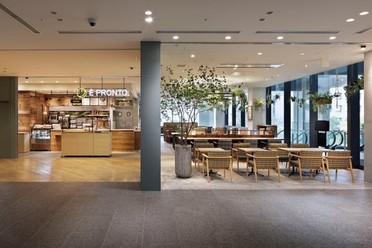 「È PRONTO(エプロント)」とは、イタリア語で「準備OK」「ご飯できたよ」という家庭的な言葉。様々な人々が行き交い、好きな時に好きなだけ時間を過ごす場所。程良く気持ち良く、誰もがとけ込めるカフェ。エプロントは、あらゆる人々の心と生活に心地よくフィットする、とっておきの“自分の場所”として一日中お好きなシーンで寛ぎの時間をお過ごしいただけます。
