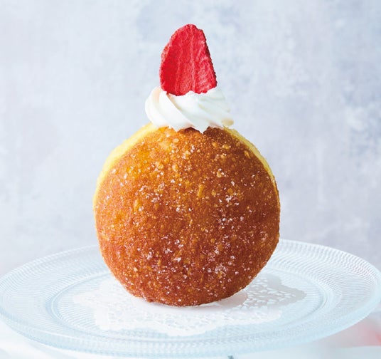 お土産にぴったりな生ドーナッツシリーズに新作フレーバーが仲間入り。フリーズドライの苺をてっぺんにのせ、まるでショートケーキのようなキュートな見た目に仕上げました。もっちりとした生ドーナッツの中には、あまおう苺のクリームとホイップクリームを詰めています。