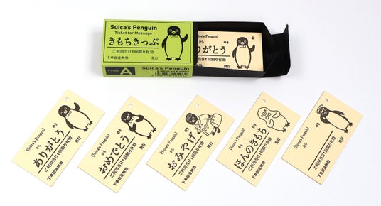 14日(金)より、切符をモチーフにしたSuicaのペンギンのマグネット2種とメッセージカード