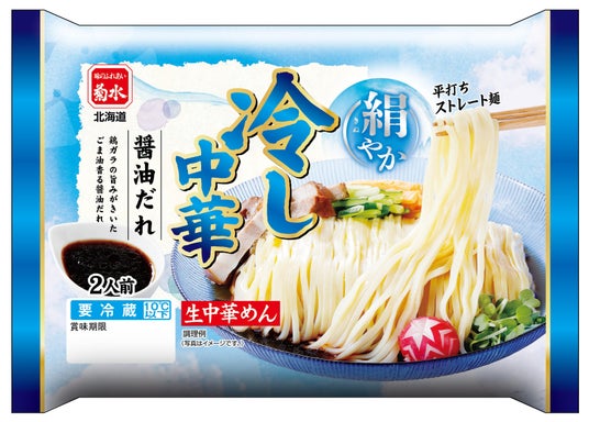 株式会社菊水(本社:北海道江別市、社長:春名公喜)は、絹のような食感を特長に開発した平打ち麺「絹やか麺」と冷たい麺に合うスープがセットになった「絹やか仕立て」シリーズを発売します。