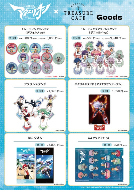 コラボカフェにて、ENOSHIMA TREASURE CAFE限定『想星のアクエリオン Myth of Emotions』コラボグッズを販売いたします。
