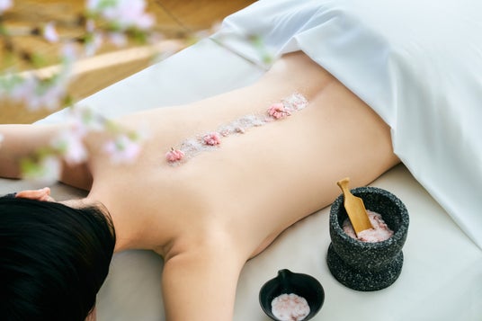 ・桜の塩漬け、塩のボディスクラブを使った背中のケア