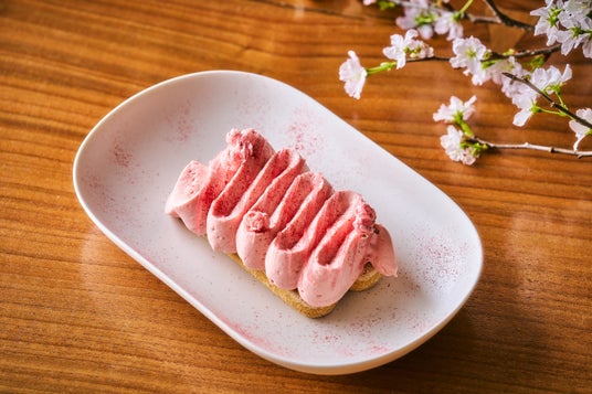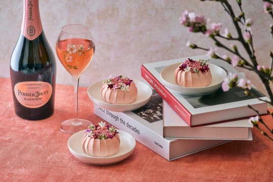 ペストリー ショップでは、さらに、桜の季節を祝う特別なペアリングセット「スイーツ&バブル - 桜」をご用意しました。華やかな桜の季節にぴったりな1日8個限定のケーキ『Fleur(フル―ル)』と、フランスの老舗シャンパーニュメゾン、グラスで提供するペリエ ジュエのロゼ シャンパーニュをセットでお楽しみいただけます。桜とルバーブを主役に、繊細な食感と香りを重ねたFleur。爽やかな酸味のルバーブコンポート、桜シロップを染み込ませたスポンジケーキ、そしてペリエ ジュエのロゼ シャンパーニュの華やかな香りを纏ったムースが織りなす、洗練された味わいが特徴です。桜の装飾が美しい店内でお花見気分を味わいながら、春らしい優雅なひとときをお過ごしください。
