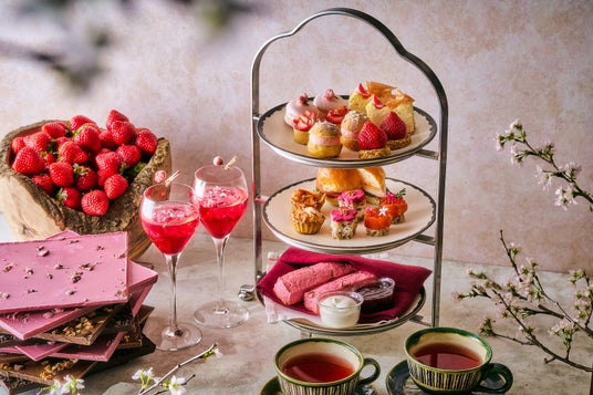 ザ タヴァン グリル&ラウンジでは、うららかに咲く桜からインスピレーションを得て、桜や苺を使用し淡いピンクでまとめた「桜アフタヌーンティー」を期間限定でご用意いたします。桜の上品な甘みと香りがふんわりと広がるシャンティクリームを軽やかな食感のサワードゥブリオッシュでサンドした「桜トロペジェンヌ」や、桜海老の香ばしい風味となめらかなアパレイユが織りなすハーモニーが絶妙な「桜海老キッシュ」など、春を感じるこの時期ならではの食材を活かした大人の味わいをご堪能いただけます。さらに、チョコレート大国と称されるスイス出身のシェフパティシエ ノルマン・ジュビンが手掛ける大好評のチョコレートバーのテーブルサービスに、桜の塩漬けをトッピングしたルビーチョコレートが登場。お好みの量で割って楽しむ桜の風味豊かなチョコレートをはじめとした3種類のチョコレートをフレッシュの苺とともにご提供いたします。