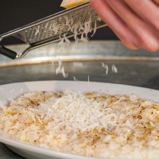 チーズたっぷり!チーズ&黒胡椒のパスタorリゾットたっぷりチーズとピリっと黒胡椒がアクセントになった〆にぴったりのメニュー、リゾットがオススメ