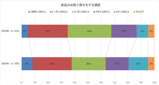 (1)食品通販の頻度(2019年・2024年の比較データ)
