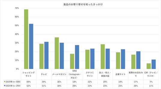 (4)食品通販を知ったきっかけ(2019年・2024年の比較データ)