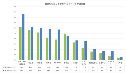 (2)食品通販をするイベントや記念日(2019年・2024年の比較データ)