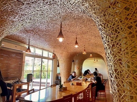 竹藝をインテリアにした名物タケノコ料理レストラン