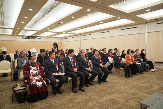 また、会場では、貴州から訪れた水城画の画家代表・徐源氏が創作に関する想いを語り、「水城画は、刺繍やろうけつ染め、切り紙、彫刻などの技法を融合させたものです。今回の作品を通じて、日本の皆さまに祝福をお届けし、ぜひ貴州へもお越しいただきたいです」と述べました。