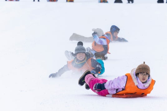 道産子にはおなじみの雪遊び、米袋で作ったソリで滑る「米そり」。