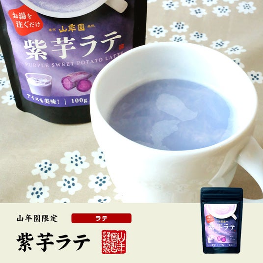 巣鴨のお茶屋さん山年園のインターネットショップにて、お湯を注ぐだけで簡単に作れる紫芋ラテの販売を開始いたしました。老舗のお茶屋が自信を持って提供する紫芋ラテです。