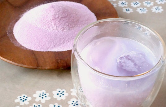 お湯を注ぐだけで簡単に作れる山年園オリジナルの紫芋ラテ