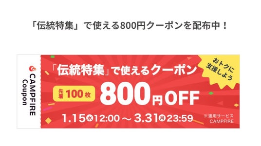 今なら「伝統特集」で使えるクーポンが配布中です!
