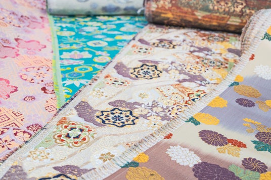 西陣織とは? 西陣織とは、京都(西陣)で生産される「先染(さきぞめ)の紋織物」の総称です。高級絹織物として知られており、多品種少量生産が特徴で、国の伝統的工芸品にも指定されています。