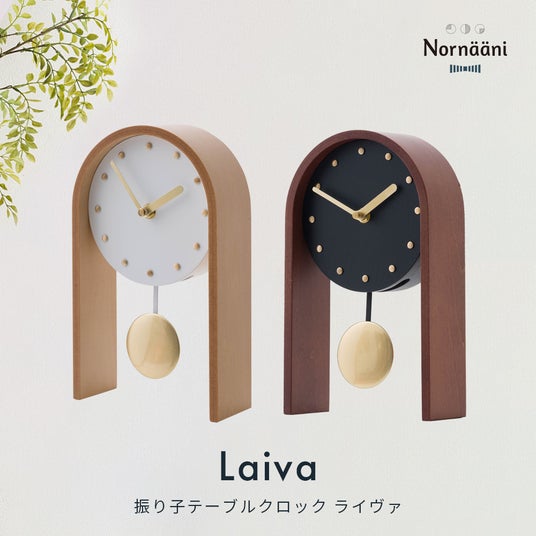 Laiva(ライヴァ)木のぬくもりを感じる置き時計。アーチ状のフレームと振り子の組み合わせが特徴的なデザイン。「ホワイト」「ブラック」の2色展開。