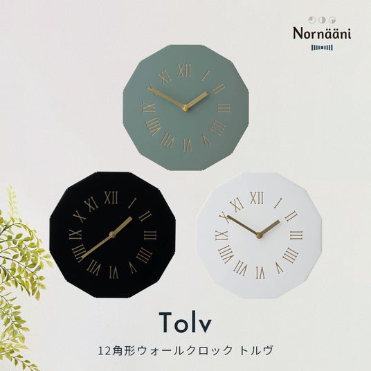 Tolv(トルヴ)立体感のある十二角形が特徴的な掛け時計。インデックスはローマ数字で装飾的。
