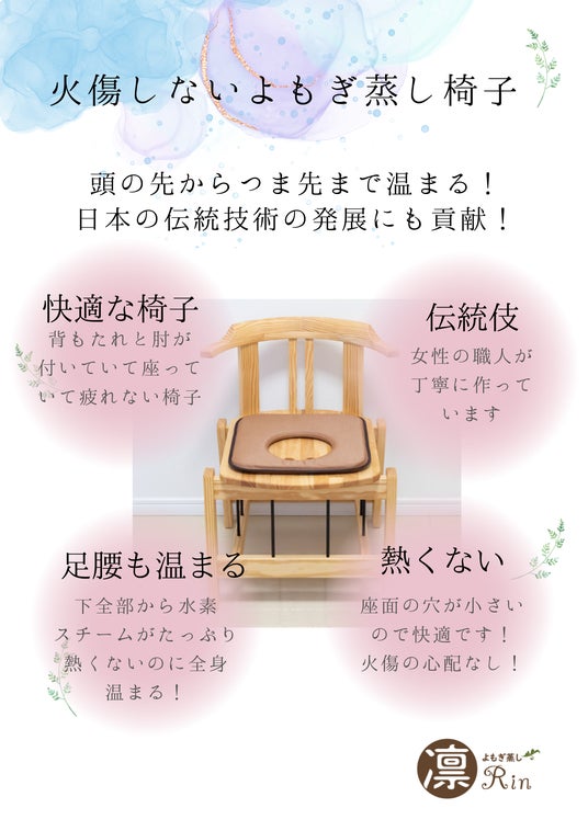 よもぎ蒸しをメニューにしているリラク、エステ、スポーツジム、鍼灸整体院などに通う年齢を重ねた女性のヘルスケアにさらに貢献できる商品となったと期待している。