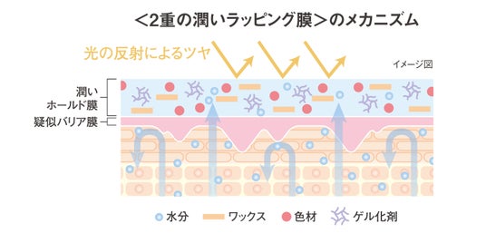 - 潤いを逃さず、唇に負担なく密着する<2重の潤いラッピング膜>を形成。