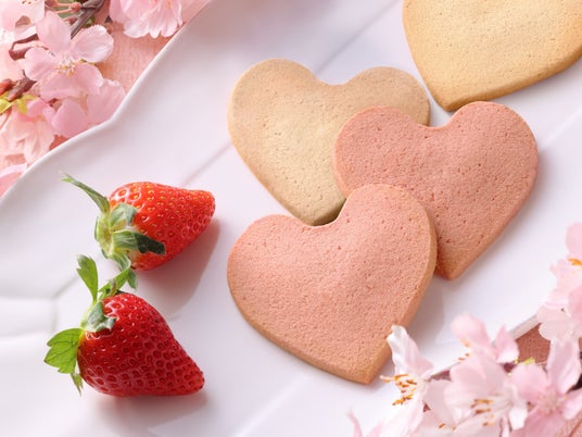 「春のしあわせサブレ」は、ハートの形がほほえみを呼び、サクサクとした軽い食感といちごの豊かな風味が爽やかな、季節にふさわしいひと品です。