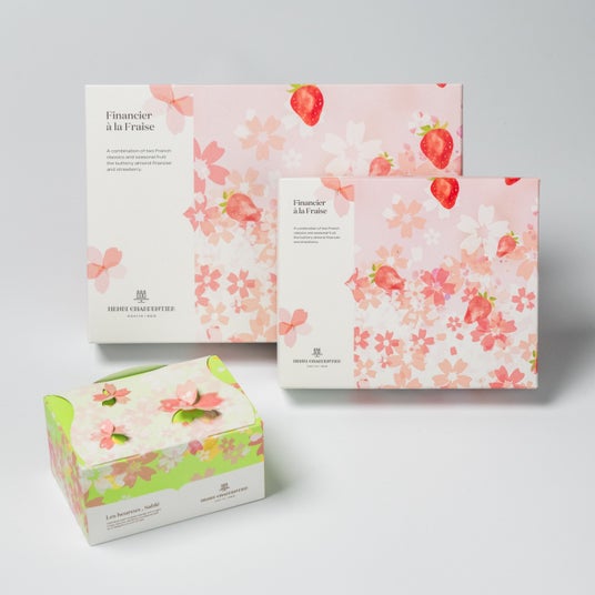 アンリ・シャルパンティエから、春のご挨拶に最適な、おもわず笑顔がこぼれる優しい味わいのラインナップが2種類登場いたします。桜といちごを散りばめた春を感じる仕様で、そのままでもお渡ししやすいパッケージです。新たな門出と出会いに花を咲かせます。