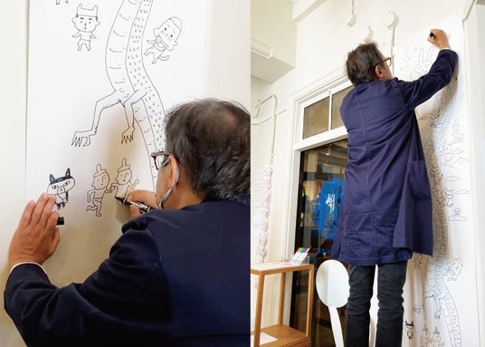 展覧会の開幕とねこの日を記念して、2/21(金)と2/22(土)には中川先生が会場でライブペイントを行います! 横100cm×縦240cmほどもある大きな紙に絵を描いてくださる予定です。
