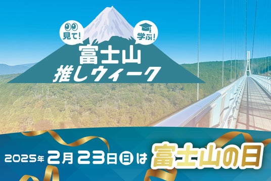 全長400m、日本一の歩行者専用つり橋「三島スカイウォーク」(所在地:静岡県三島市、運営:株式会社フジコー、本社:静岡県三島市、代表:宮澤俊二)は、来る2月23日の『富士山の日』にちなみ、富士山はどんな山なのかはもちろん、いつも見ていた富士山の知らない一面を発見できる企画「富士山推しウィーク」を2025年2月22日(土)から2月28日(金)まで期間限定で開催します。富士山の日当日は、実際に絶景に触れて富士山の魅力を学んでいただきたく、小・中学生の皆様を無料で招待いたします。