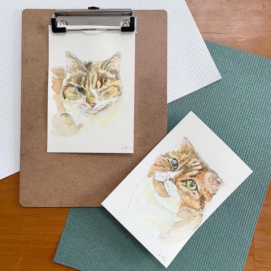 お家の愛猫ちゃんとのツーショットポートレートや、猫ちゃんだけの似顔絵も描いてもらえます!