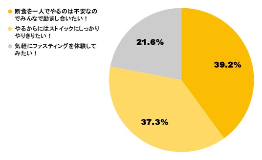 ファスティングを行う際、「みんなで励まし合いながら取り組みたい」と考える方が多数でした。