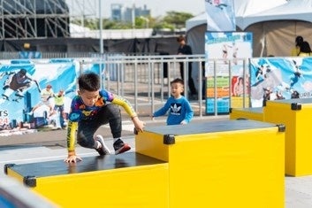 昨年、全国各所において合計約200日間、イベントを開催した「パルクール鬼ごっこ」が台湾に初登場。友達同士で、親子で、初めて会った子ども同士でチャレンジ。