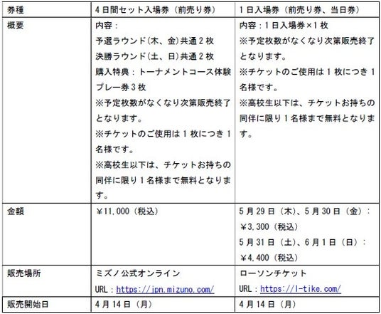 入場券は、4月14日(月)からミズノ公式オンラインとローソンチケットで発売します。 さらに、より多くの方に視聴いただけるよう、大会期間中、全日程においてABEMAにてリアルタイムで放送します。