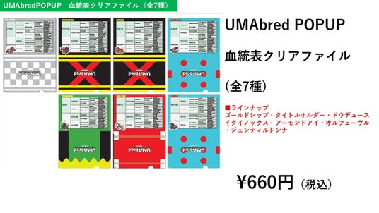 各馬もとい各UMAを彩る”サイアーライン”を1枚のクリアファイルに詰め込みました。