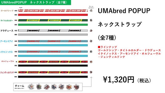 勝負服風デザインとなっており、先端には各UMAのチャームが付属。